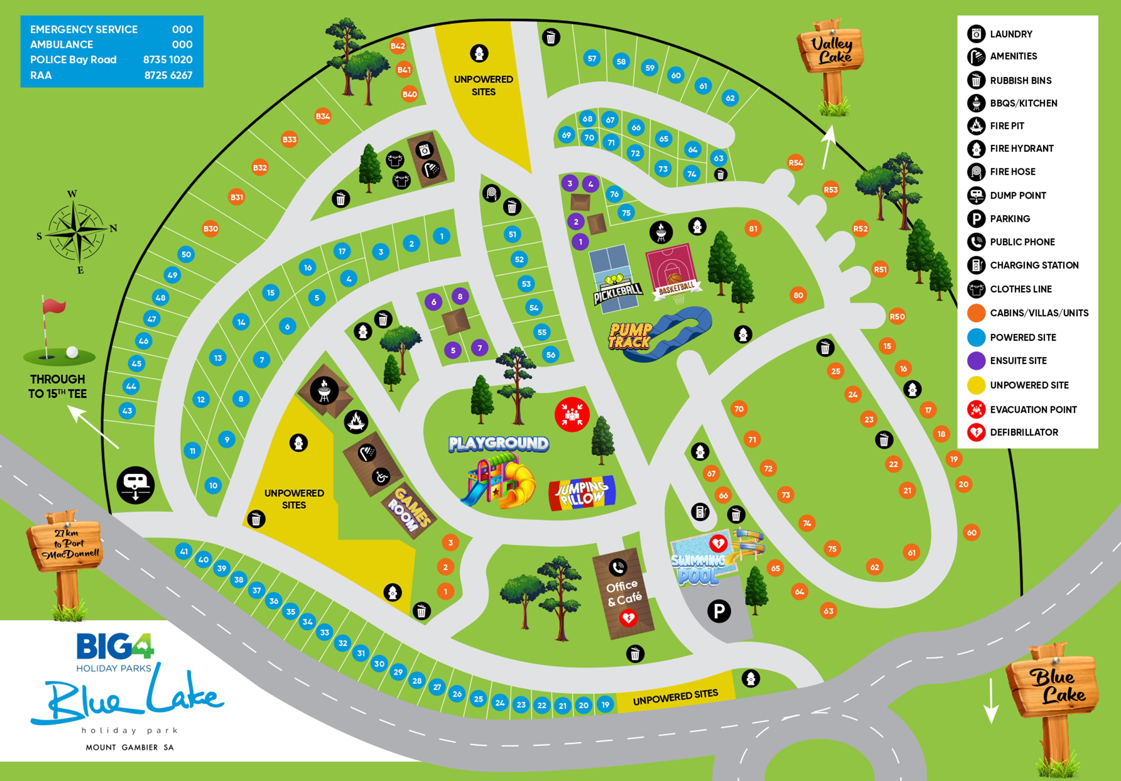 Blue Lake Holiday Park is a beautiful and relaxing 27 acre park, welcoming holidaying visitors to Mount Gambier whether they are camping, caravanning or looking for cabin accommodation. Our facilities include a pool, new adventure playground, jumping pillow, games room, camp kitchen and easy access to the golf course next door. We’re also next door to the world famous Blue Lake.